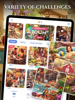 If you think hidden object games are repetitive and can't surprise you anymore, think again. This game has no timers, so you can enjoy searching at your own pace. It features over 7,000 levels that can be played in any order, with 6 new challenges added daily. You can also zoom in to find even the trickiest hidden items and choose your preferred difficulty level before starting.
