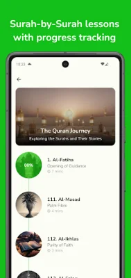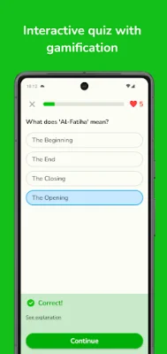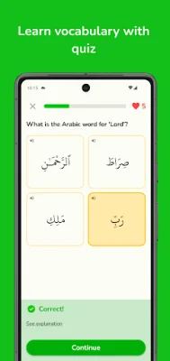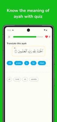 The app also offers quizzes that are designed around key Islamic concepts and teachings. These quizzes not only challenge your knowledge but also help you grow and improve your understanding of the Quran. Additionally, there are puzzles based on the Surahs you have learned, making learning fun and educational at the same time.