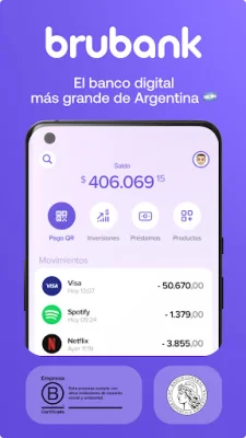 Otra de las funciones destacadas de Brubank es el pago con código QR, que te permite escanear cualquier código para pagar con tu dinero en cuenta o con tu tarjeta de crédito de forma segura en tiendas físicas. También podrás acceder a préstamos, adelantos y cuotificación, con la posibilidad de obtener un préstamo en pocos segundos y recibirlo al instante, pedir un adelanto para emergencias o cuotificar tus compras para facilitar su pago.
