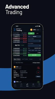 Trade Securely: Use advanced trading tools to place buy and sell orders with Market, Limit, or Stop options. You can also convert your crypto assets to Turkish lira with the "Convert" feature.