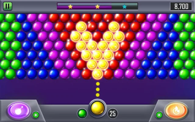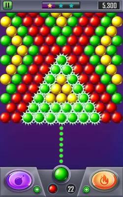 The game features two awesome boosts: the Fireball and the Bomb. The Fireball can be obtained by popping 7 balloons in a row and will burn every bubble in its path. The Bomb can be obtained by blasting 10 or more balls and will take out surrounding bubbles.
