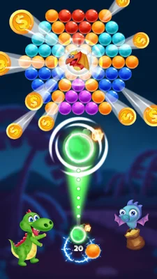 Bubble Shooter: Dragon Rescue is a fun and addictive game that combines the classic bubble shooter gameplay with cute dragons and colorful bubble worlds. The objective of the game is to aim and shoot bubbles to match 3 or more of the same color, and pop all bubbles to rescue the adorable dragons. With hundreds of exciting and challenging levels, players must use boosters and special bubbles strategically to clear tricky stages and earn 3 stars on every level.