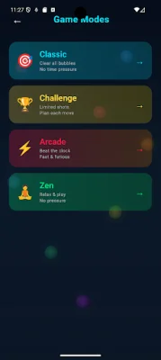 The game features four exciting game modes: Classic, Challenge, Arcade, and Zen. In Classic mode, players can clear bubbles at their own pace without any time pressure. Challenge mode limits the number of shots per level, requiring players to plan their moves carefully. Arcade mode adds a time pressure element, making it a fast-paced and adrenaline-pumping experience. And in Zen mode, players can relax and play endlessly with auto-refilling moves and no game over. Each mode has 200 unique levels with increasing difficulty, providing over 800 levels of bubble-popping fun!