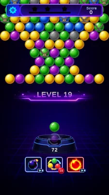In Bubble Shooter, your goal is to keep popping bubbles to stay in the game and reach your highest score ever. The rules are simple: aim and shoot by dragging your finger to aim the laser and lifting it to shoot. Group 3 or more bubbles of the same color to make them burst and prevent them from reaching the bottom of the screen. The more bubbles you pop in one shot, the higher your score will be. Use your strategy to create massive chain reactions and score big!