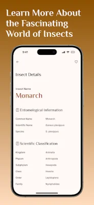 In addition to spiders, our app also offers an insect identification feature. This feature enables users to identify various species of insects and learn more about them. With detailed information about each insect, our app is a valuable resource for anyone interested in the world of bugs.