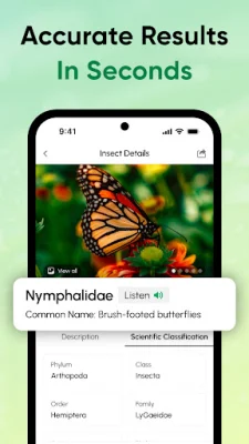The app's main feature is its ability to quickly and accurately identify insects and bugs. Using AI trained on thousands of species, it can identify a wide range of insects, even from partial or blurry images. This makes it like having a bug expert in your pocket, always ready to help you learn more about the tiny creatures around you.