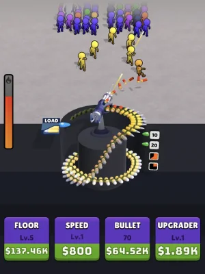 This application is designed to enhance the user's experience by allowing them to increase the firing speed of their device simply by tapping on the screen. The more taps the user makes, the more bullets will be fired. This feature adds an element of excitement and intensity to the user's gameplay, making it more engaging and enjoyable.