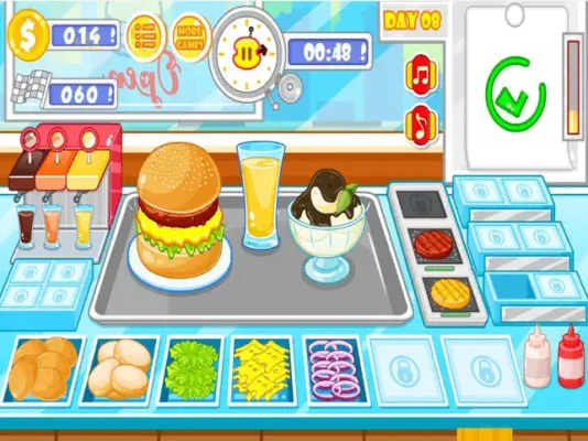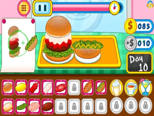 The Burger Shop Fast Food game offers a variety of cooking-related information and activities. You will learn that to prepare your favorite burger or hot dog, you must drag each item from the bottom of the screen. There is also a timer at the top of the screen, challenging you to prepare your food within a certain amount of time. However, unlike other fast-paced cooking games, this game offers endless open-ended gameplay, allowing you to make a great burger without feeling rushed. There are also no impatient or disgruntled customers in this simulation, making it a stress-free and enjoyable experience.