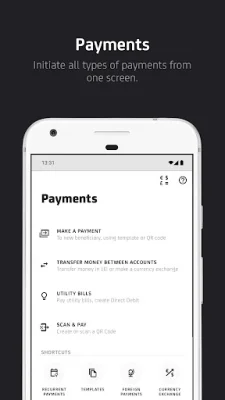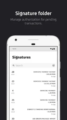 Users can view their transactions by selecting the account from which they were made. The app also offers advanced filtering options to quickly find specific transactions. In the Payments section, users can make various types of payments, including those synced with their BusinessNet account templates. The app also has a Signatures section for creating and authorizing payment instructions, which is now connected to the BusinessNet and Business Mobile applications.