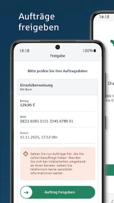 - Für alle freigabepflichtigen Geschäftsvorfälle wie Überweisungen, Überträge und Daueraufträge