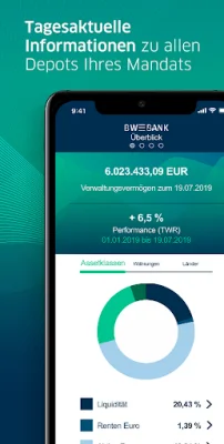 Die exklusive BW-Bank Vermögensverwaltung bietet mit dieser App einen schnellen und einfachen Überblick über alle wichtigen Informationen zu Ihrem Vermögen. Um die App nutzen zu können, müssen Sie sich lediglich mit Ihren Online-Banking-Zugangsdaten der BW-Bank einloggen. Einmal eingeloggt, können Sie die gewünschte Login-Methode festlegen und bei Bedarf ein Tutorial starten. Die App zeigt Ihnen eine Liste aller aktuellen Depots bei der BW-Vermögensverwaltung an und ermöglicht es Ihnen, bequem eine Einzelübersicht mit Auswahl des gewünschten Depots zu erhalten.
