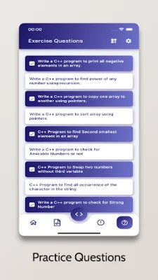 In addition to these features, the app also provides exercise questions to help users improve their knowledge and understanding of C++. These exercises are designed to challenge users and help them apply their skills in real-world scenarios. The app also includes a collection of general DSA programs with code, making it a valuable resource for students and professionals alike.