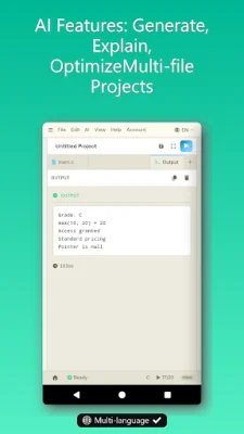 This application is a C IDE and compiler that utilizes AI technology. It does not require registration and allows users to write or generate code and compile it without leaving their device. The app is designed for learners, educators, and developers who want a quick and efficient way to prototype, experiment, and compile C code. It offers a variety of features to enhance the coding experience, including real-time output, a full IDE editing feature set, and AI copilot features such as code generation, error tracing, and optimization.