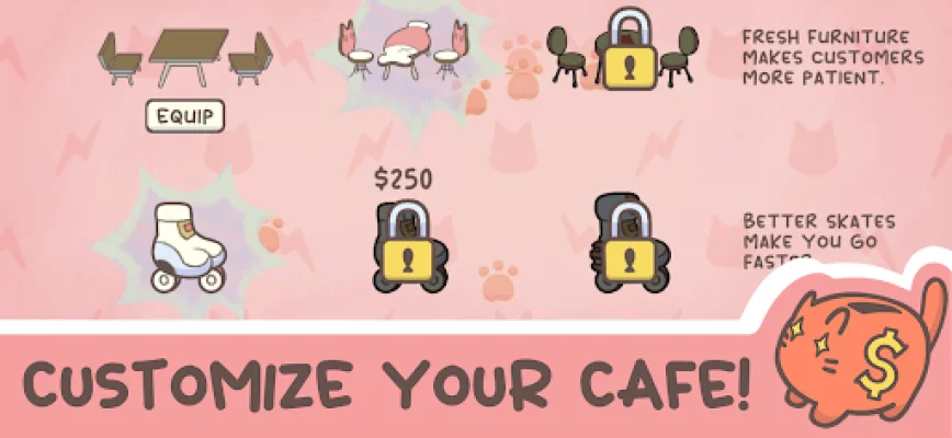 But running a cat cafe is not all fun and games, you also need to save up money to upgrade your cafe and keep your customers happy. And while you're busy managing your cafe, you can jam out to some awesome music and charming sounds in the background.