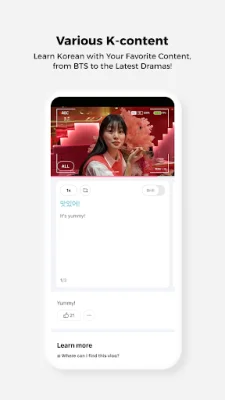 Cake is an application that helps users learn real English expressions selected by experts in the language. Through a variety of features, users can practice their speaking skills and revise what they have learned through quizzes. The app emphasizes the importance of practice and repetition in order to easily memorize the expressions. By continuously using Cake, users can improve their English and Korean skills in a fun and engaging way. One of the unique aspects of Cake is that users can learn from their favorite celebrities, artists, and vloggers through videos. The app also offers exciting original content created by the Cake team. This allows users to learn from a diverse range of sources and keep their learning experience interesting. With Cake, users can learn real native English that is commonly used in vlogs, movies, and TV shows. This includes exposure to different accents and pronunciations, as well as learning how to express one sentence in multiple ways. This helps users become more familiar with the language and develop a more natural speaking style. The app also offers features specifically designed to improve speaking skills. Users can watch videos with subtitles and repeat after each line, as well as have their pronunciation checked by AI technology. This allows for practice in a real conversation-like setting. Cake also offers a step-by-step learning approach through its "class" feature. Users can select a topic of their choice and study at their own pace with classes created by English experts. This allows for a more structured and comprehensive learning experience. In addition to learning, Cake also emphasizes the importance of revision. Users can review what they have learned through fun quizzes and save their favorite sentences for further practice. The app also encourages daily use, with the goal of just 10 minutes a day to achieve daily study goals and feel a sense of accomplishment. For those looking for an even more enhanced learning experience, Cake Plus offers unlimited hearts and access to exclusive content with no ads. This allows users to save as many words and sentences as they want and further improve their learning. With Cake, users can truly immerse themselves in real English expressions and watch their skills improve over time.