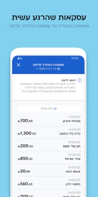 The app also offers a transaction details feature, where you can view all your expenses in Israel and abroad, including those made recently. If you come across a suspicious transaction, the app can easily provide details up to a year and a half back. Additionally, the home page features a monthly expense graph that includes all transactions from your credit cards and instant debits, such as cash withdrawals, overseas transactions, and online transactions.
