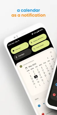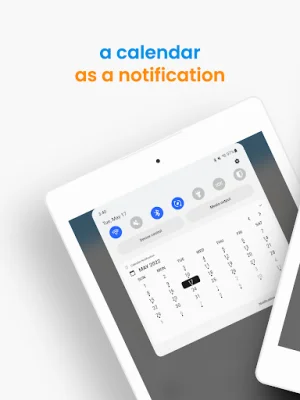 This application allows users to easily access and view their calendar events for an entire month through their notifications. Users can also view their daily agenda and see all of their scheduled events. They have the option to switch between viewing a full month or a single day. If they tap on a specific day, they can view it in their preferred calendar application. The notifications can also be customized to fit the user's preferred look and feel, and the app supports both light and dark mode.