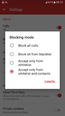 The app has a Blacklist feature where you can add phone numbers that you want to block. It also has a Whitelist feature where you can add numbers that you never want to be blocked. You can even block private numbers with this app.