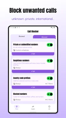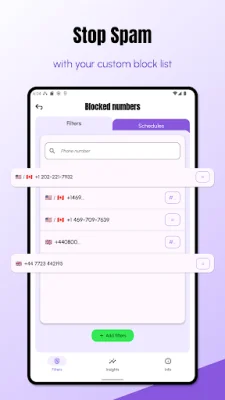 Call Blocker is an application that allows you to take control of your phone by blocking unwanted calls instantly, without even letting them ring. This gives you uninterrupted peace of mind and ensures that your phone is not constantly bombarded with spam, telemarketing, and scam calls. With powerful blocking tools and customizable schedules, Call Blocker offers 24/7 protection from various types of unwanted calls, including telemarketers, scammers, identity fraud, and unknown numbers. The app also prioritizes your privacy by ensuring that all filtering happens locally on your device and never shares your data. One of the main reasons to choose Call Blocker is the total control it gives you over your calls. You can decide exactly who can reach you and when, ensuring that important calls from your contacts always get through. The app also works alongside your default dialer, so you don't have to switch to a different phone app. Call Blocker offers a variety of features to help you stop unwanted calls. You can silence spam, telemarketers, and robocalls instantly with the Stop Unwanted Calls feature. The Call Filter feature allows you to reject suspicious numbers, spoofing attempts, and fraud calls. You can also use General Blocking to block all international calls, calls from numbers not in your contact list, and calls from No Caller ID, unknown, private, or hidden numbers. The app also has a Custom Blocklist & Whitelist feature, which allows you to block specific numbers, phone ranges, prefixes, suffixes, or country codes. You can also add trusted numbers to ensure that important calls always reach you. Additionally, Call Blocker offers a Silent/Do Not Disturb Mode, where you can silence calls with custom schedules and choose who can reach you during quiet hours. Privacy is a top priority for Call Blocker, and the app ensures that your personal data is never accessed or stored. Only the incoming phone number is checked against your filters, and all processing happens locally on your device. This keeps your information safe and secure. In conclusion, Call Blocker is a reliable and effective solution for blocking unwanted calls and giving you back control of your phone. With its various features and commitment to privacy, it is a must-have app for anyone looking to avoid spam and unwanted calls. So start blocking and start relaxing by getting Call Blocker today. If you have any questions or suggestions, you can contact the app developers at [email protected]. You can also check out their Privacy Policy and Terms of Service for more information.