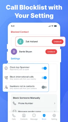 The app also offers advanced spam blocking for both calls and messages. It automatically detects and blocks unwanted or suspicious numbers, keeping your phone free from nuisances like robocalls and telemarketers. You can also customize the blocklist to add specific numbers or types of calls and messages.