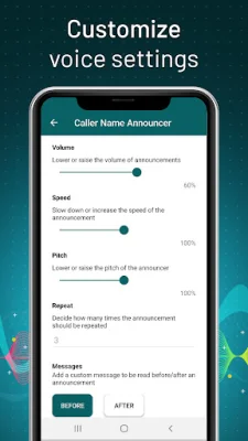 The app also allows you to personalize the announcement by adding your own message before or after the caller's name. This can be useful for adding a personal touch or providing additional information to the caller.