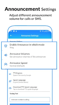 The main feature of this app is the caller announcer, which loudly announces incoming calls and text messages. Users can also choose to have the app announce the content of the text message. Additionally, the app offers the option to customize the announcement for unknown calls by assigning a custom name or number.