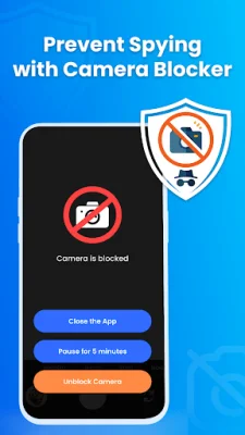 Camera Blocker: Guard, AntiSpy App is a must-have tool for anyone concerned about their privacy. This app detects and blocks any unauthorized access to your phone's camera, giving you complete control over your personal space. With just one click, you can ensure that your camera stays off when you don't want it on, providing you with peace of mind.