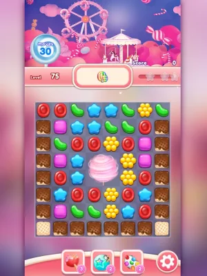 In order to play Candy-go-round, players must swap and match 3 or more candies of the same color and shape. They can also create special candies by matching 4 or more candies in different shapes. The goal is to reach the end of each level before running out of moves. Players can use special candies and boosters strategically to overcome difficult situations. By earning 3 stars in each stage, players can also unlock delicious cakes and earn gold coins.