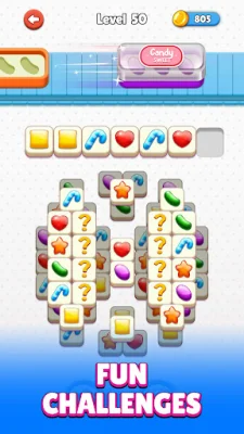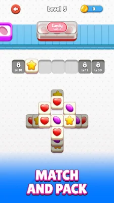 CANDY JAM MATCH is a fun and addictive tile-matching puzzle game that will keep you entertained for hours. The objective of the game is to pack three matching candies into a box, which will then be delivered to different parts of the world. The boxes are piling up and forming a jam, and it's up to you to solve the puzzle and pack the candies in the box.
