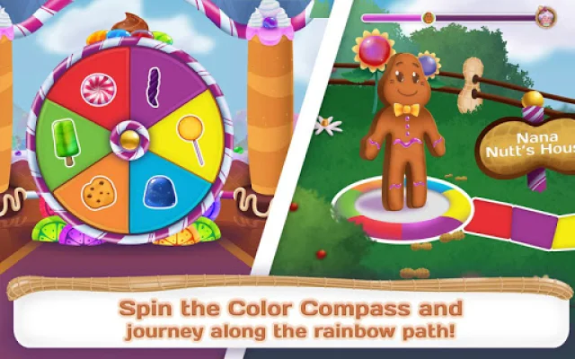 As you make your way down the rainbow road, you'll encounter different challenges and missions. Land on a grey tile and help undo Lord Licorice's grey work, or land on a rainbow tile and use your color skills to make things right. Each chapter ends with a special challenge and a candy reward for your RAINBOW BAG. By collecting all the candies, you'll help bring color back to CANDY LAND.
