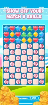 In addition to its competitive gameplay, CandyPrize also offers a variety of features to enhance the gaming experience. These include the classic match 3 puzzle game, the ability to create combos with bigger matches for more points, and the challenge of achieving goals and scoring points within the time limit.