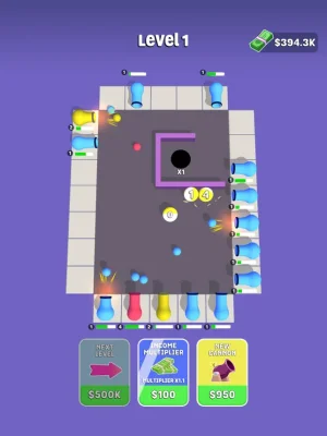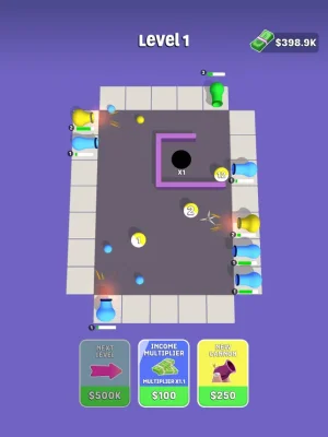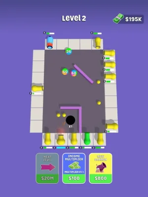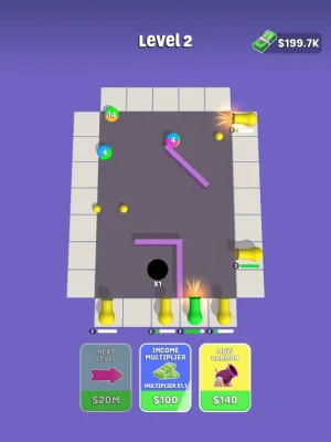 This application is a game where the player's objective is to shoot a ball towards a hole in the middle of the screen. The game is designed to test the player's accuracy and skill in making successful shots. The more accurate the shots are, the more points the player will earn. Additionally, if the player can successfully make a loop, they will earn money at a faster rate. This adds an extra challenge and incentive for players to improve their skills and aim for the perfect shot.