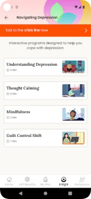 Enlight is a self-paced mental health companion offered by Canopy to employees who have this benefit through their employer. This application provides a convenient and accessible way for individuals to improve their mental well-being. With Enlight, users can access a variety of resources and tools to support their mental health journey.