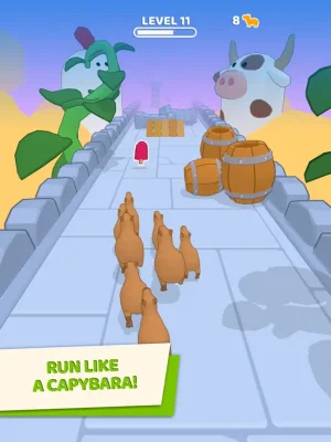 So, what exactly can you do in this app? Well, there are five different game modes for you to choose from. You can run and grow your capybara herd while avoiding obstacles, hop in a car and go for a drive with your capybara friends, jump in the water and swim in a sea full of adventure, stack capybaras to form the tallest capybara tower, or even fly a plane like a capybara and conquer the skies. The possibilities are endless!