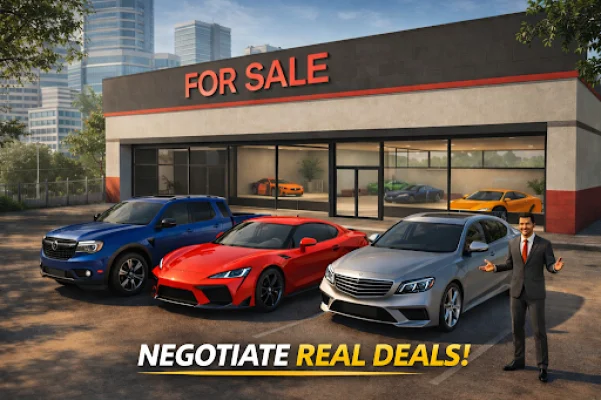 This application is a car dealership tycoon simulator that allows players to start from scratch and build their own car business empire in the city. It combines elements of business games, tycoon games, and car trading to create an immersive and exciting experience. Players begin by purchasing a building and transforming it into a professional car dealership. They can then display cars, attract customers, and upgrade their showroom to unlock more space, better inventory, and luxury vehicles. As their business grows, they can expand and dominate the city. The main goal of the game is to buy and flip cars for profit. Players must hunt for cheap used cars across the city, find hidden deals, rare vehicles, and budget buys, and then sell them in their showroom for maximum profit. They can buy used cars from people, pick up cheap cars from the market, and discover rare vehicles worth big money. The key to success is having a sharp eye for a good deal. In addition to buying and selling cars, players must also negotiate with real customers who visit their showroom with offers. They have the power to set their own prices, counter offers, accept or reject deals, and maximize their profit per sale. Mastering the art of negotiation is crucial for growing their car dealer business. As players progress, they can unlock more showroom display slots, new car models, luxury and rare vehicles, and powerful business upgrades. They can also explore the city to find hidden car deals, cheap vehicles, and high-value cars to flip. Every street holds a new opportunity, and the better their strategy, the bigger their dealership empire will become. Overall, this application offers a unique and engaging experience for anyone who loves business and tycoon games, as well as car enthusiasts. It allows players to fulfill their dream of becoming a successful car dealership tycoon and offers a variety of features such as negotiation, building and upgrading showrooms, and exploring the city for hidden deals.