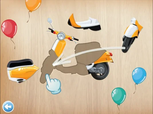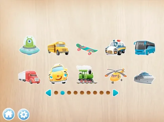 The theme of this particular puzzle is "Vehicles," but the app offers other themes such as "Animals," "Food," "Bath," "Kitchen," "Furniture," and "Tools." This allows children to explore different topics and expand their knowledge and vocabulary.