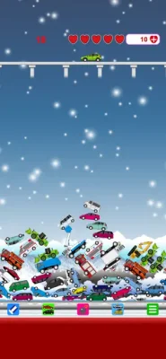 This application is a fun and interactive game where you can control a car at the top of the screen and move it left and right. The goal is to release the car at the right moment so it falls down and bounces and slides on other falling cars. The more cars you stack, the higher your score will be. The game encourages players to make a mess and play freely, adding an element of creativity and fun to the gameplay.