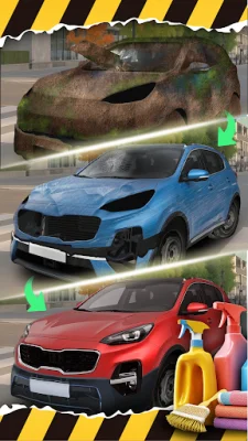 To start playing, you'll first wash and clean the car by using a realistic high-pressure washer to spray off dirt and grime. Then, you'll clear out any trash from the interior and prepare to give your vehicle a complete makeover.