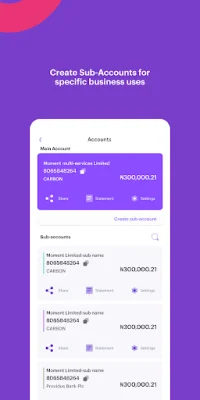 Creating business accounts has never been easier with our app. You can instantly create accounts for your business and even sub-accounts for specific purposes. This allows for better organization and management of your finances.