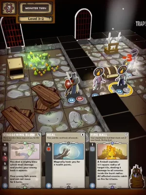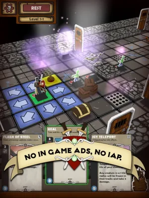 Card Dungeon offers a full 3D experience, allowing players to rotate, zoom, and pan across gorgeous board game tiles. There are over 1,000 cards to discover and equip, making each playthrough unique as players transition between different play styles. The game also features randomly generated levels with hand-placed creatures, adding an element of surprise and challenge to each playthrough.