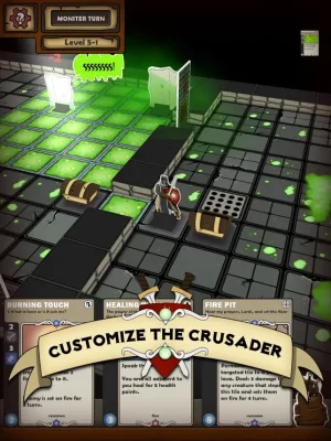 The game follows the story of Crusader, who must free the lands from the hordes of the Nethermist. It is a turn-based strategy game where players can only do one thing per turn, so they must choose their actions wisely. The game starts with the player being dealt three cards, which can be used for attacks, defense, health, magic, summoning, and more. As the player progresses through the levels, they may come across new cards that they can choose to keep or switch with their current ones.