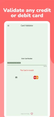 Card Validator supports popular card types such as Visa and MasterCard, making it a versatile tool for both personal and professional use. The app also has the ability to detect the type of card based on the number entered, making the validation process even more efficient.