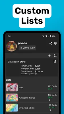 One of the most useful features of DittoDex is its powerful collection tracker. Users can create custom lists for their battle decks, trade binders, or favorite grails, making it easy to keep track of their entire Pokémon card collection digitally. This feature is especially helpful for users with large collections, as they can easily add entire sets with just a few taps.