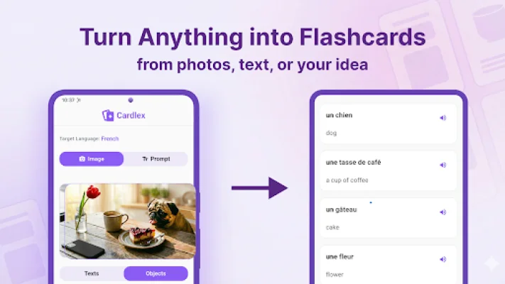 One of the unique features of Cardlex is its ability to generate flashcards based on any situation or topic. This means that users can customize their learning experience and focus on the vocabulary that is most relevant to their needs. Additionally, Cardlex can recognize text from photos, such as menus, signs, and documents, and turn them into flashcards. It can even recognize objects in photos and generate relevant words and phrases, making it a versatile tool for language learning.