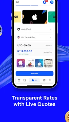 CardSale is an online platform that allows users to sell their gift cards for Naira, the currency of Nigeria. This means that after a sale, users can withdraw their earnings directly into a designated bank account. This makes it a convenient and efficient way to turn unused gift cards into cash. One of the main reasons to choose CardSale is its focus on security. The platform uses fully automated card processing, which means that no human ever sees the card details. Additionally, CardSale has implemented an escrow system to protect every transaction until it is successfully confirmed. This gives users peace of mind knowing that their information and transactions are secure. Another advantage of using CardSale is its transparent rates. The platform frequently updates the market price for each gift card, and customers can see the rates upfront. This means that there are no unexpected charges, and users know exactly what they will receive for their gift cards. CardSale also offers a wide coverage of popular gift cards on the market, giving customers a broad range of options to choose from. This makes it a convenient platform for anyone looking to sell their gift cards. In case of any questions or concerns, CardSale has a dedicated customer support team available to assist users. This ensures that any issues can be resolved quickly and efficiently. Using CardSale is a simple process that can be completed in just three steps. First, users need to submit their gift card details on the platform. Then, the system will securely verify the card's validity. Once confirmed, users can see their earnings in their Wallet and withdraw the balance directly to their bank account. If you're looking for a secure and convenient way to trade your gift cards, then CardSale is the perfect option for you. Download the app today and start exploring the world of secure trading. Please note that CardSale is not affiliated with any of the gift card brands mentioned or shown on the platform, making it an unbiased and reliable option for users.