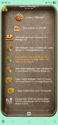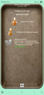 Even when you're away from the game, Carter's Cookie Clicker has your back with offline progress. You'll come back to a pile of cookies waiting for you. And if you want to save your cookies and earn passive interest, you can store them in the cookie bank.
