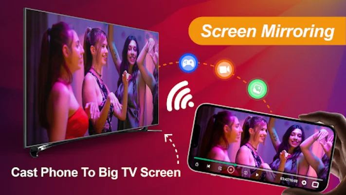 The "Cast to TV - Screen Mirroring" app allows you to turn your Android phone into a big-screen experience by screen mirroring everything you love - movies, music, games, apps, and presentations - directly to your TV. This is made possible through the use of screen mirroring, screen mirror, screen share, and TV Cast technology. The app offers a variety of features to enhance your viewing experience, including fast and stable screen casting, support for all Smart TVs, and full HD screen mirroring quality. It also has a one-tap setup for easy connection and private and secure casting.