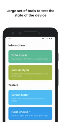 Castro also offers useful tools for more control over your device, such as the ability to share device information through data export, test display state with the screen tester, and check noise levels with the noise checker.