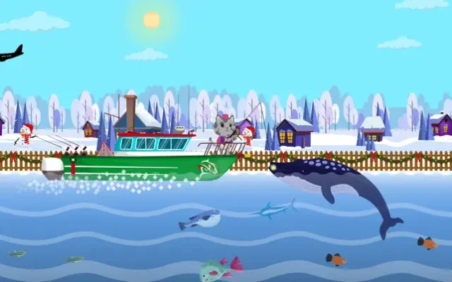 One of the main features of Cat fishing is the ability to travel to different locations around the world and fish at famous fishing spots. The game offers 5 beautiful environments and 10 amazing boats for players to unlock and explore the vast sea. In addition, players can upgrade their fishing rod, reel, and rod line length to improve their chances of catching rare and valuable fish.