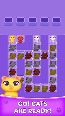 To play, simply tap a cat to send it into one of the available slots. Your objective is to match three cats of the same color to clear them. But be careful, cats are stacked below and will only move up when there is space above them. This means that every placement matters and you'll need to strategize to avoid running out of space.